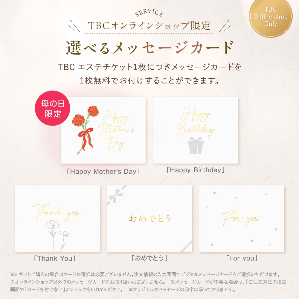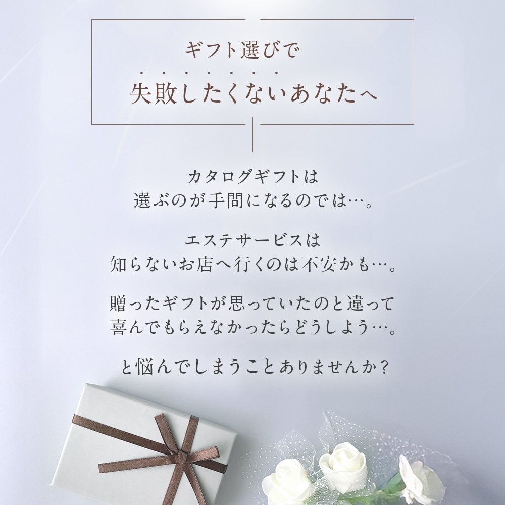クリスマスや母の日などのプレゼント、ブライダルエステ、各種イベントの景品、ご自身へのご褒美にもぴったりです。