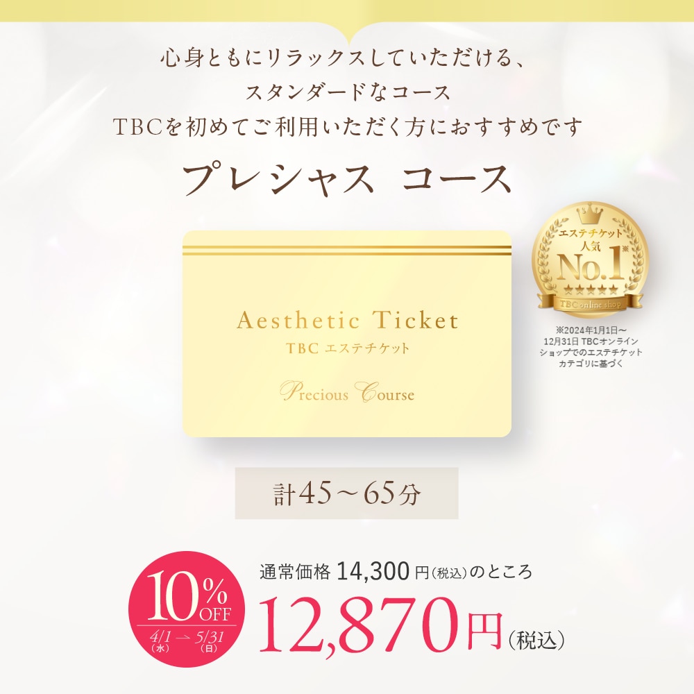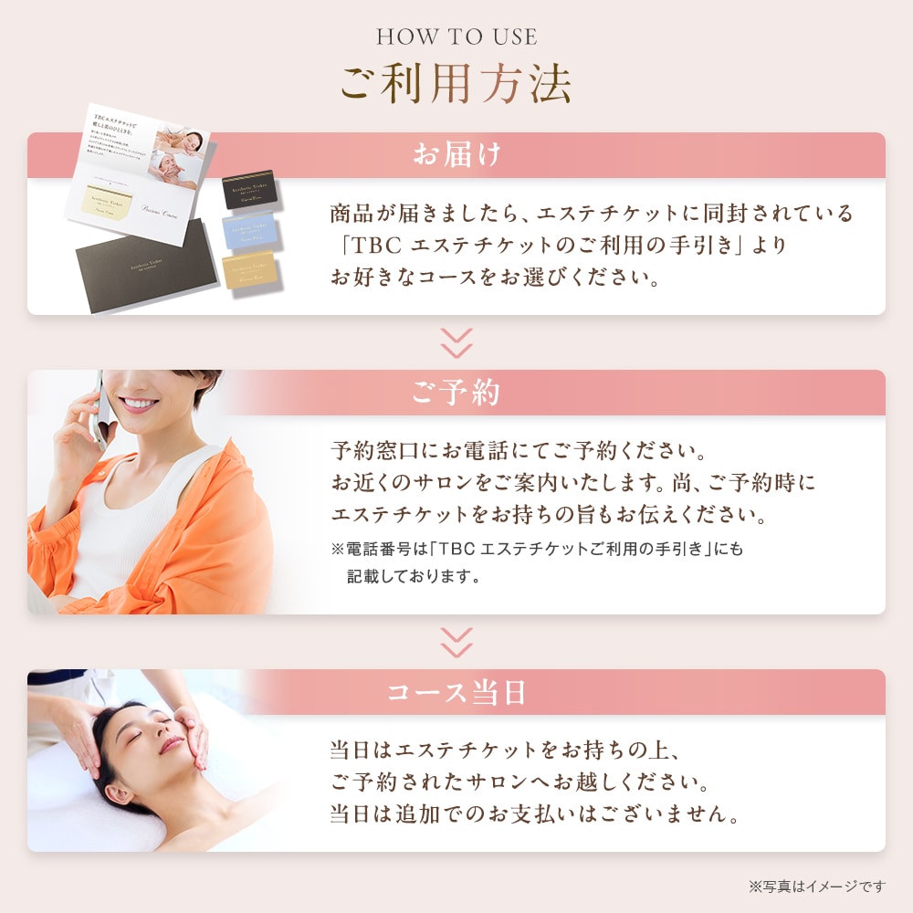 TBCエステチケットとは、全国のTBC・MEN’S TBC全店でエステティックコースが1枚につき1回ご利用いただけるチケットです。